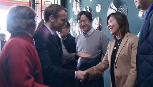 馬克龍總統(tǒng)親切與大家握手問候,更關(guān)切地了解了中法、中歐之間的文化交流與藝術(shù)合作的情況,對于這個百年中法大學(xué)建筑和藝術(shù)家們的創(chuàng)作都表達出濃厚的興趣和高度的贊許。