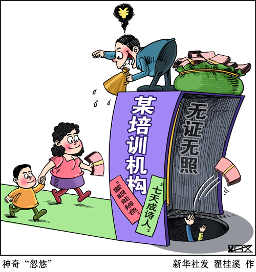 近年來,功利教育觀大行其道,培訓(xùn)市場魚龍混雜,推波助瀾。不少家長架不住廣告“忽悠”,老師“洗腦”,報班花費成千上萬,可到頭來沒讓孩子練就“開掛”本領(lǐng),反被部分培訓(xùn)機構(gòu)坑錢、坑娃、坑智商。種種洗腦式營銷,消費家長們的焦慮,加劇拔苗助長的功利心,違背了教育育人為本的初心。