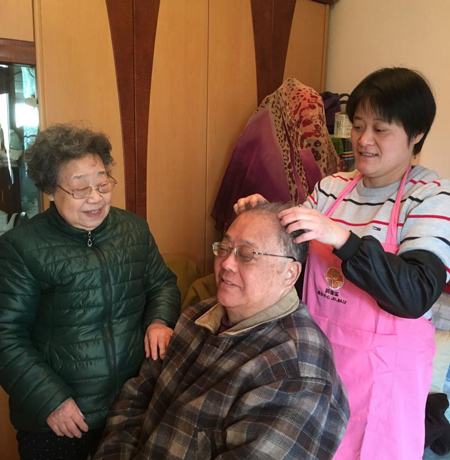 居家樂(lè)養(yǎng)老服務(wù)中心工作人員上門(mén)為老人服務(wù)