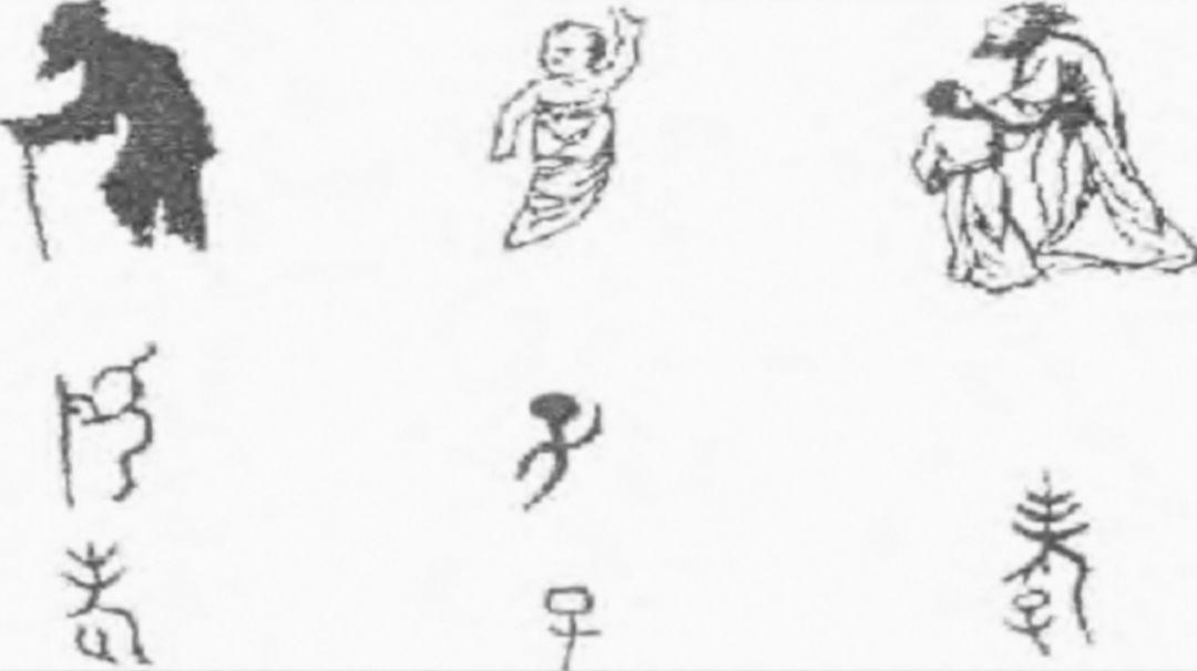 請大家看這樣一幅圖,那第一個,一個老人拄著拐杖行走,象形之后形成了甲骨文中的一個“老”字。