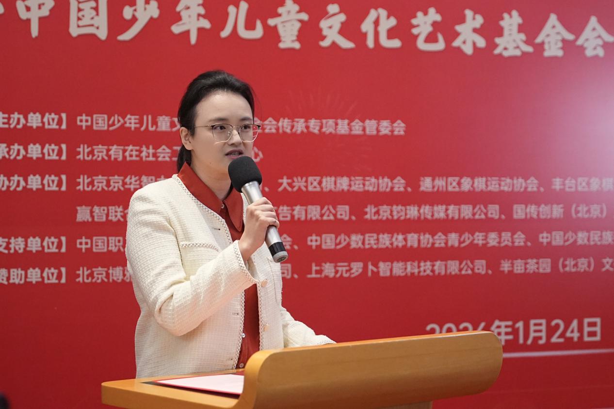 中國少年兒童文化藝術(shù)基金會傳承專項(xiàng)基金管委會主任李成致辭,強(qiáng)調(diào)了“傳棋計(jì)劃”在推動青少年文化素養(yǎng)與象棋教育融合方面的重要意義。